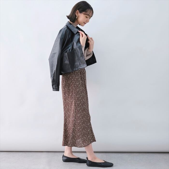 落ち着いた色味の小花柄がコーデに取り入れやすく、