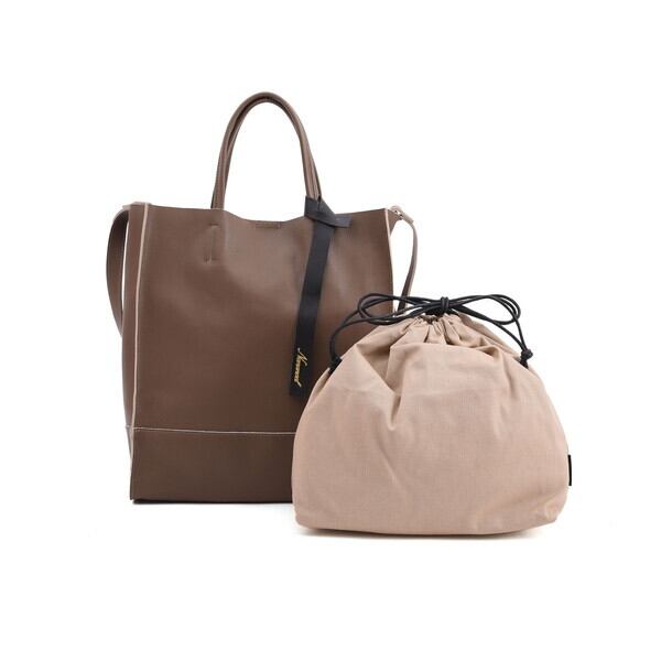 【本格レザーでユニセックスに使える★レザー2WAYトートバッグ】Nananoel emma 巾着レザー2WAYトートバッグ(マット)3カラー