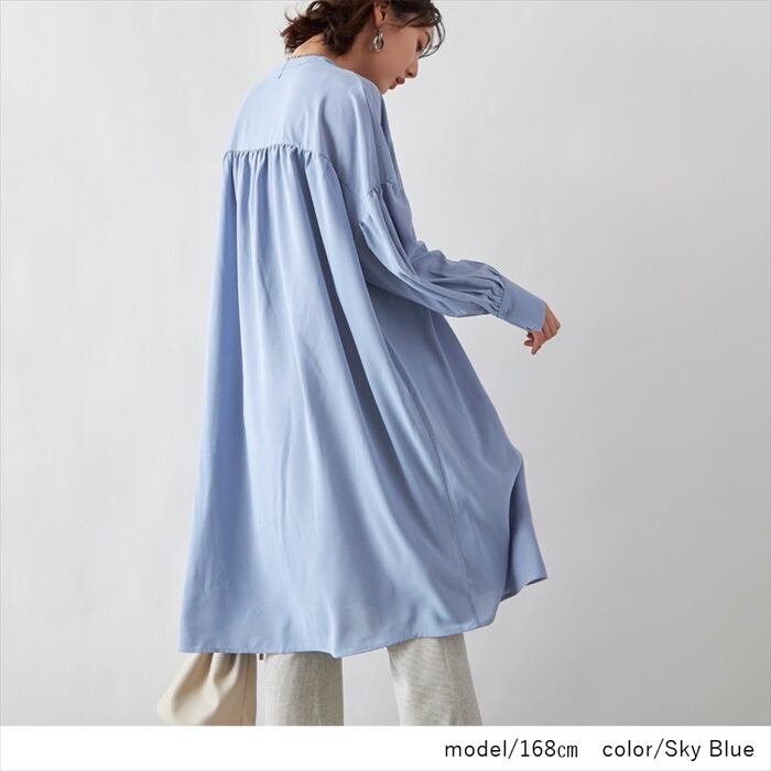 去年から引き続き人気のたっぷりとギャザーを加えたオーバーサイズロングブラウス。