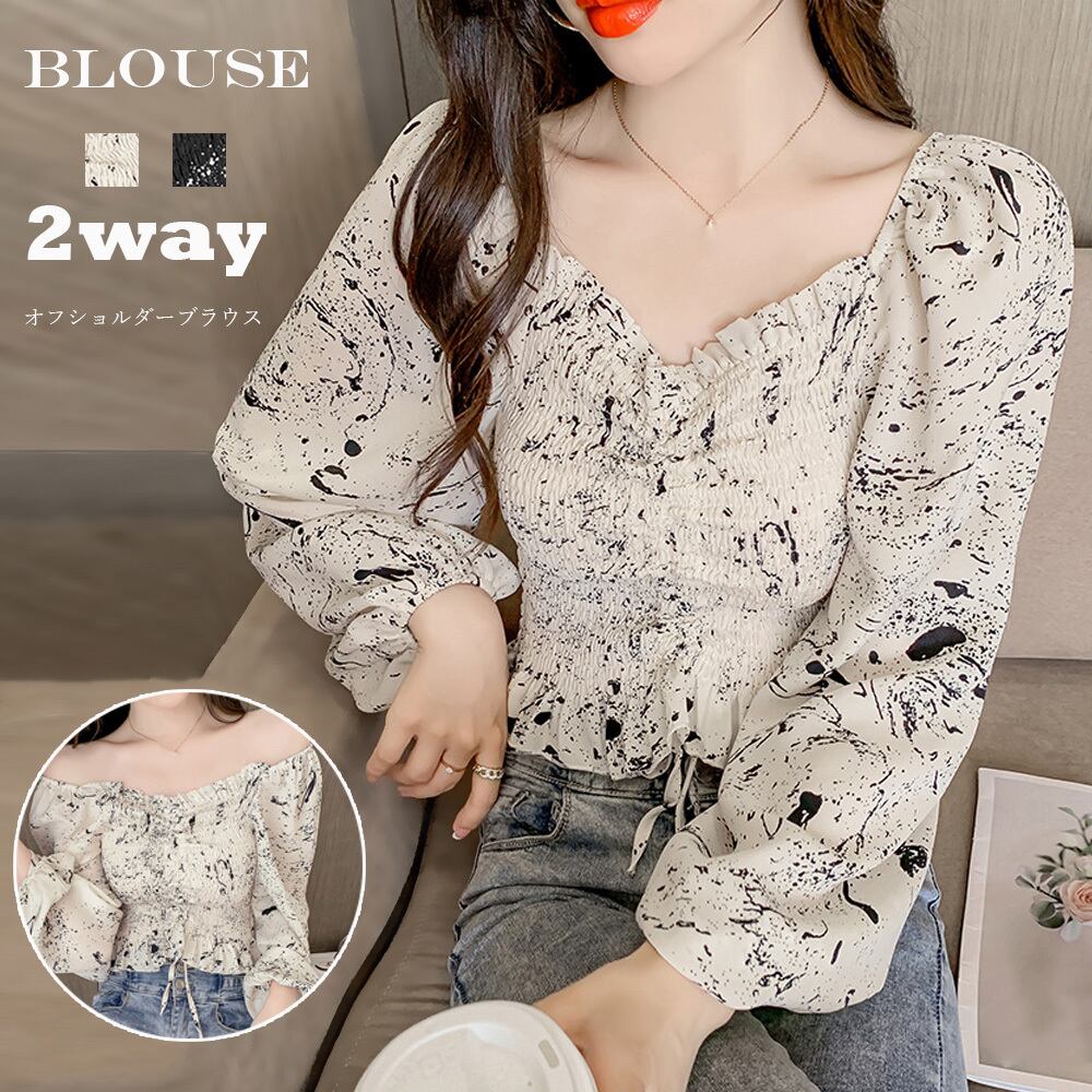 【ヘルシーな肌魅せができる★オフショルダートップス】オフショルダーブラウス2カラー